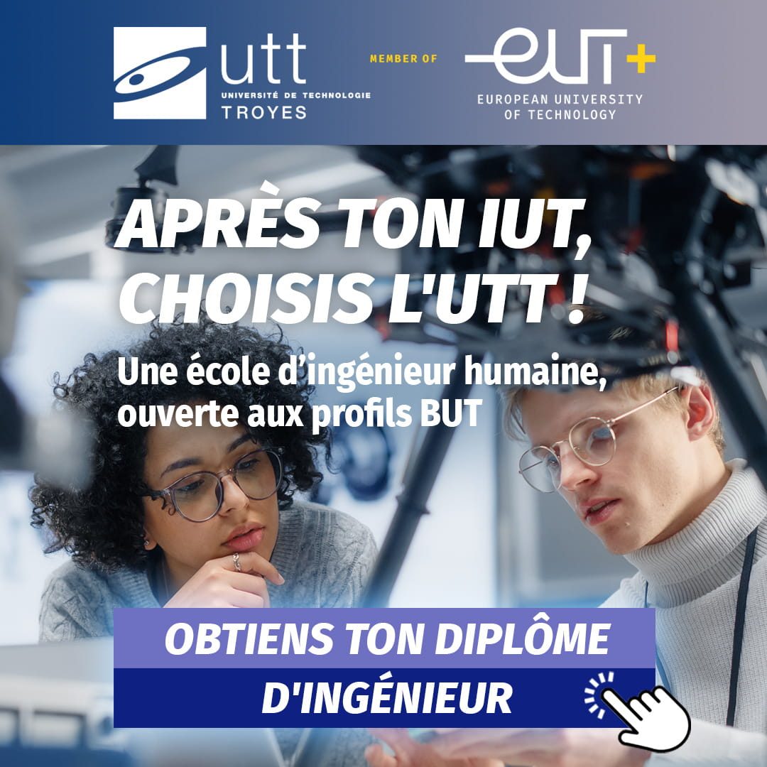 Première école d’ingénieur du Grand Est et parmi les 10 meilleures écoles d’ingénieur de France, l’UTT est également une université publique, reconnue pour son modèle unique, de parcours personnalisé pour chaque étudiant, alliant formation, recherche et transfert de technologie.